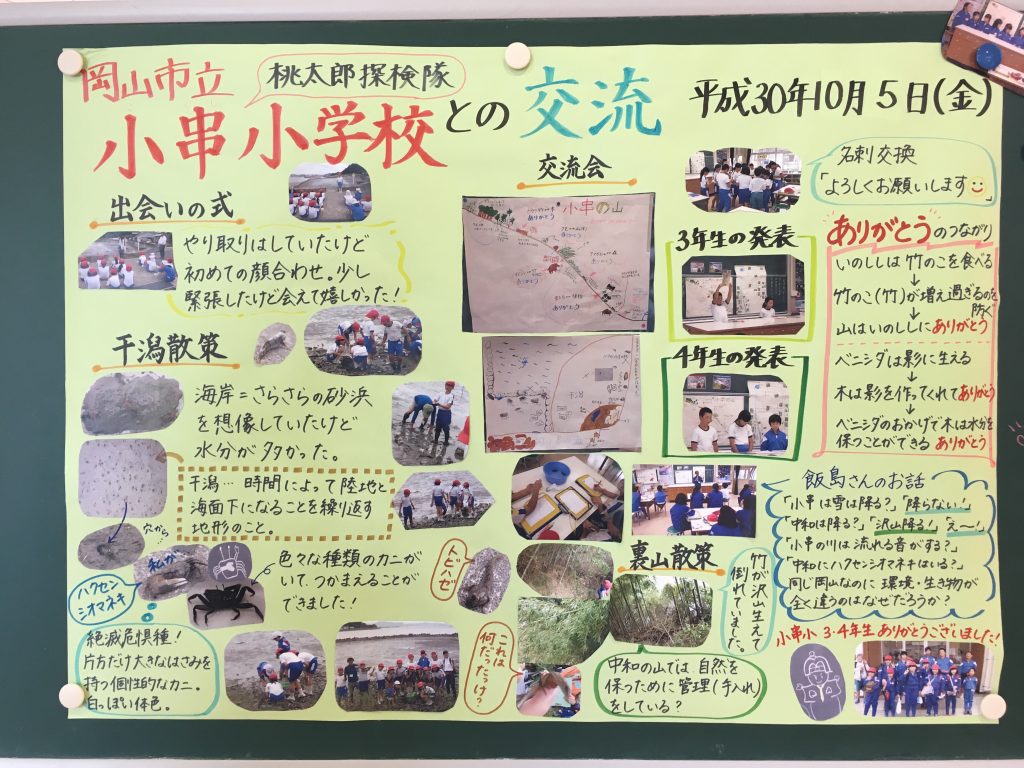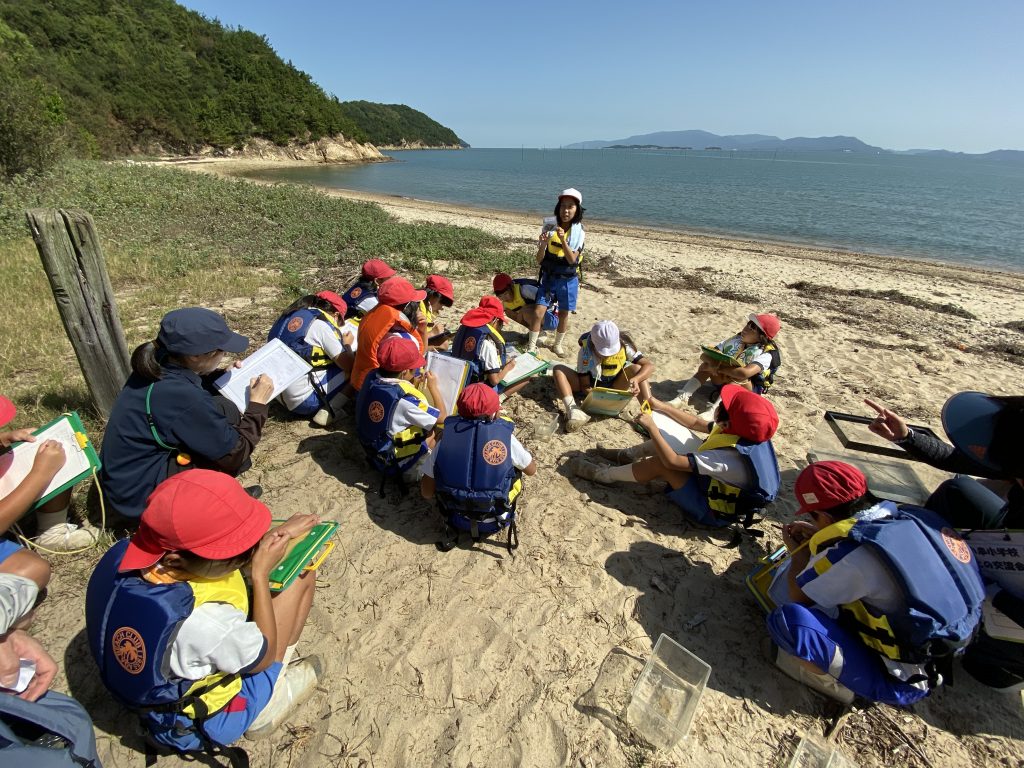 旭川が流れ込む瀬戸内海に面した岡山市立小串小学校の子ども達と地域のお宝(特色)を探す学習を行いました。