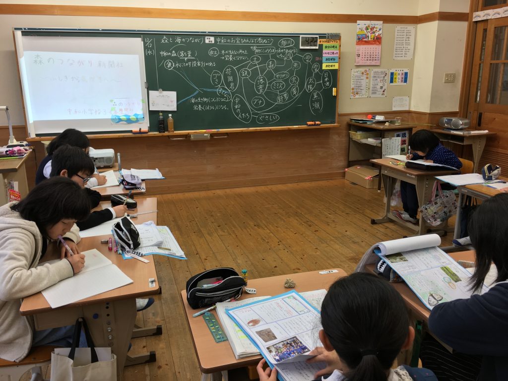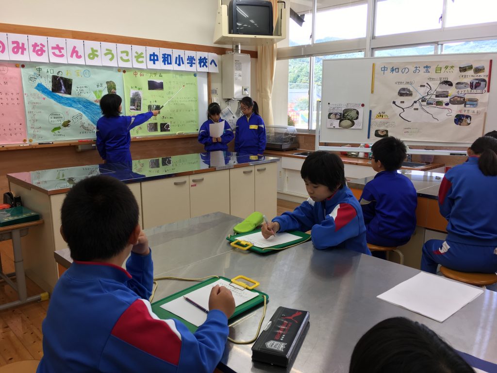 旭川の源流部、鳥取県との県境に位置する真庭市立中和小学校の子ども達と地域のお宝(特色)を探す学習を行いました。