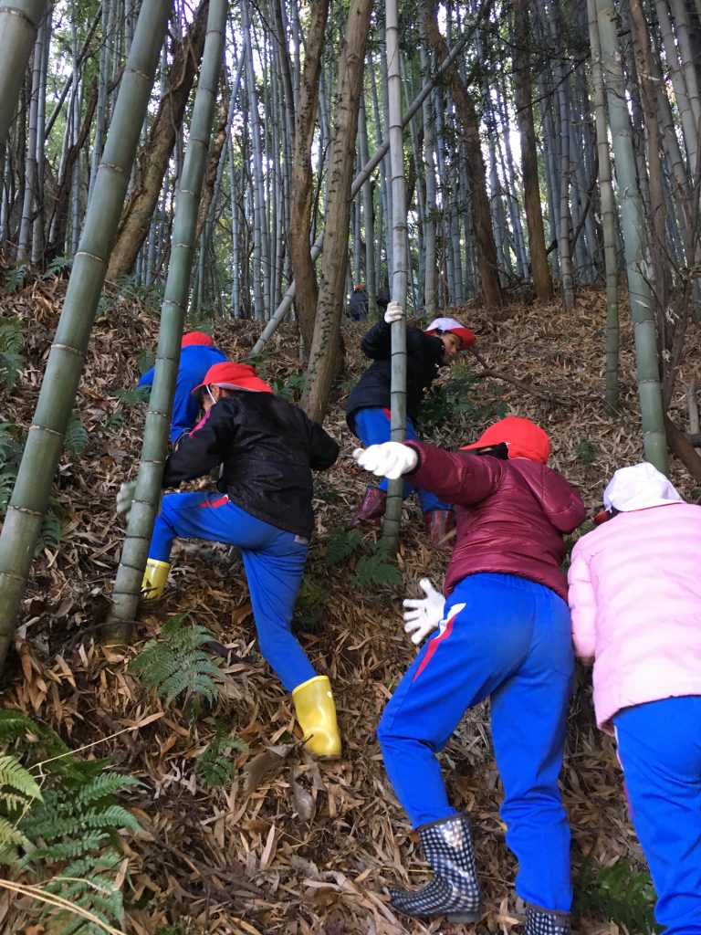 お宝探しに出掛けてすぐに、子ども達は学校の裏山が放置竹林に覆われていることに気づきました。そして、ここが以前は雑木林や畑だったことを、地元の人から教えてもらいました。どうして、放置竹林が広がってしまったのか、人と自然の繋がりの変化から考えていきました。