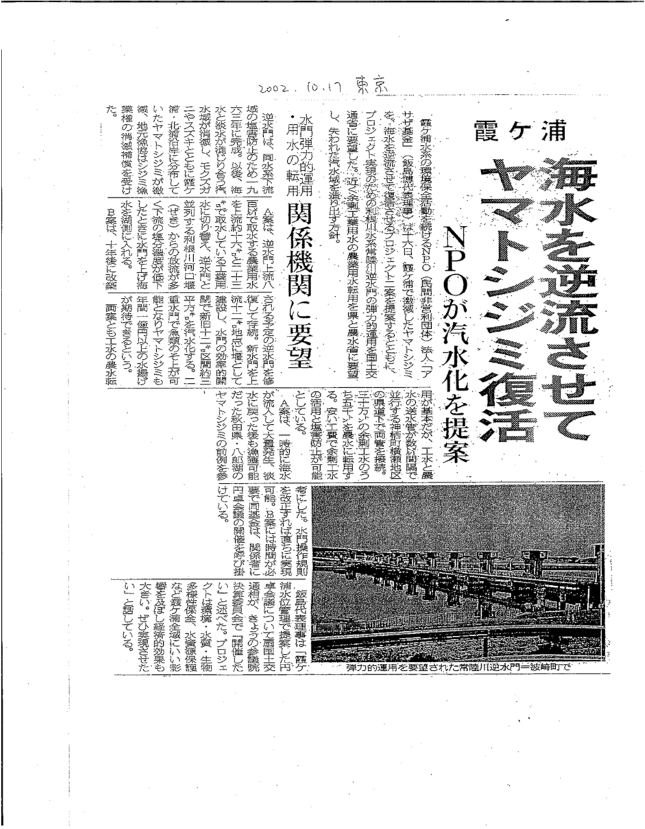 アサザ基金が提案している霞ヶ浦と利根川・海を隔てる逆水門(常陸川水門)の柔軟運用案についての国会質疑(第155回 参議院環境委員会)を逆水門の柔軟運用案のコーナーにアップしました。